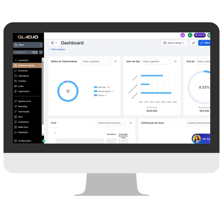 E tenha apenas a GL4D.IO para a gestão de sua estrutura de vendas e atendimento. Nenhuma ferramenta no mercado se equipara à nossa solução!